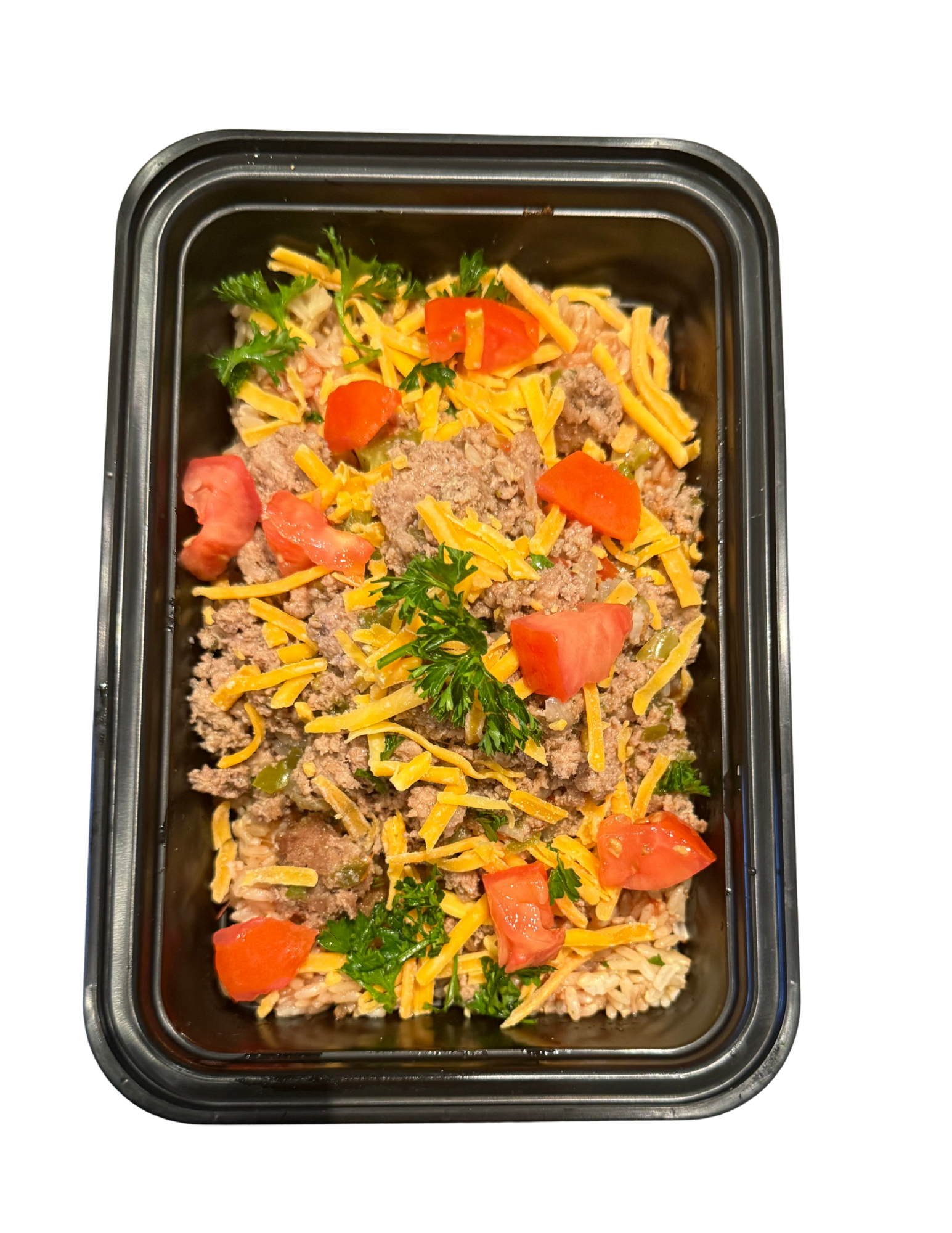 Spice up your mealtime with our Turkey Skillet! We've taken lean ground turkey and perfectly seasoned it, then mixed it with a vibrant medley of sautéed peppers, onions, and fresh tomatoes. All of this deliciousness is served over a bed of our flavorful fiesta rice for a fresh, satisfying, and undeniably yummy meal.